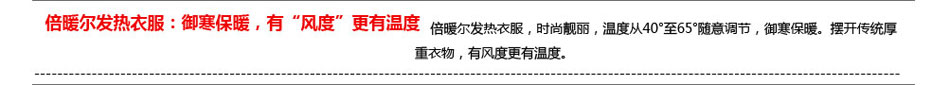 【倍暖爾】充電發(fā)熱鞋、發(fā)熱手套、發(fā)熱衣服不僅款式時尚,供年輕消費者選擇,【倍暖爾】發(fā)熱馬甲,足以替代傳統(tǒng)保暖羽絨制服,完全可以實現(xiàn)“美麗、風(fēng)度,更有溫度”的需求。當(dāng)然除此,時尚的發(fā)熱手套、發(fā)熱鞋無一不是年輕人的所愛。