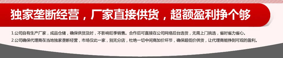 省會城市、地級、縣級等區(qū)域代理,均享受超低進(jìn)貨折扣,獲取超級盈利