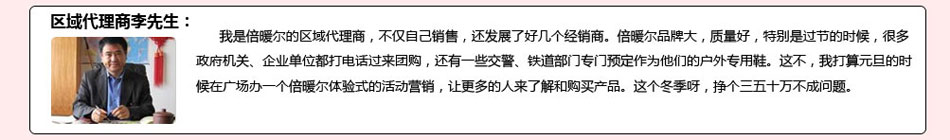 【倍暖爾】發(fā)熱鞋、發(fā)熱衣服、發(fā)熱手套另有其獨特的遠(yuǎn)紅外吸濕、理療保健功效,能夠有效緩解關(guān)節(jié)酸痛、腰酸、肩背酸痛,是中老年人溫暖過冬的首要選擇。