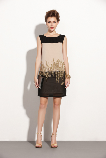 簡(jiǎn)介:酷豚連黑米拼接釘珠衣裙:酷豚黑米拼接釘珠連衣裙,面料選用輕薄的雪紡與雙縐拼接。面料質(zhì)地輕盈、柔軟、透氣性強(qiáng),穿著舒適??犭嗪诿灼唇俞斨檫B衣裙采用米色與黑色撞色,體現(xiàn)時(shí)尚體質(zhì),搭配金色釘珠,錯(cuò)落有致的排列十分有節(jié)奏感,為整款增添奢華感,亞光材質(zhì)的運(yùn)用使整件衣服不會(huì)過(guò)于隆重??犭嗪诿灼唇俞斨檫B衣裙適宜職場(chǎng)女性在工作、出席宴會(huì)等正式場(chǎng)合穿著。