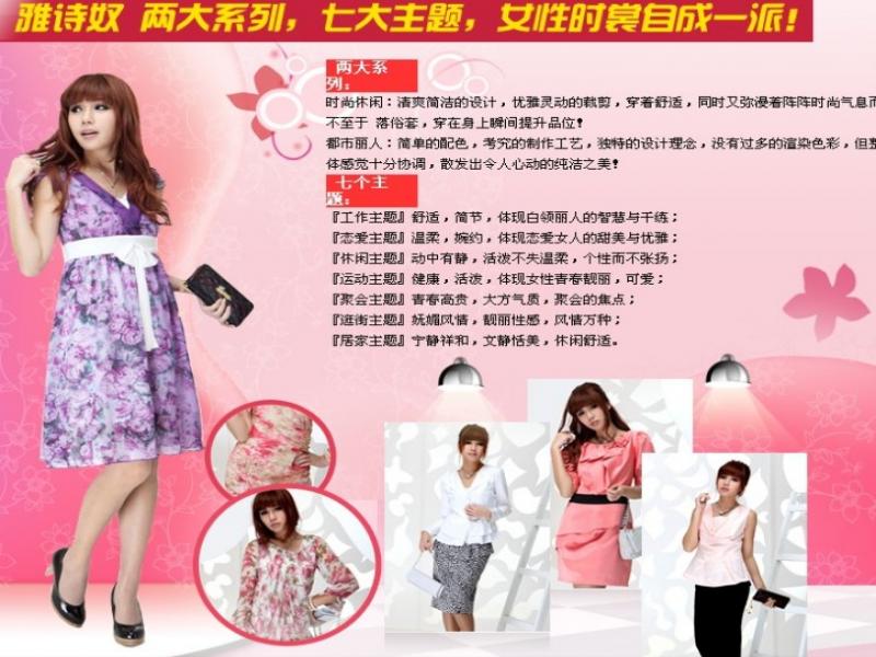 介紹:雅詩奴服飾有限公司乃集設(shè)計開發(fā)、OEM生產(chǎn)、銷售于一體的專業(yè)女裝服飾企業(yè)。公司自2005年創(chuàng)立以來,歷經(jīng)4年的風(fēng)雨磨礪,在激烈的市場競爭中脫穎而出,雅詩奴已經(jīng)成為中國女裝服飾的知名品牌。回首過去,雅詩奴經(jīng)歷了傳奇般的跨越式發(fā)展,一年一小變,三年一大變。公司專營時尚女裝服飾,包括潮流女裝、配飾及包包。公司擁有優(yōu)秀的設(shè)計師團隊、先進的管理模式以及專業(yè)的營銷隊伍,在追求產(chǎn)品種類多元化、單一品種精致化的同時,公司采用多樣化的經(jīng)營方式,主要分為專賣經(jīng)銷商以及品牌代理商。