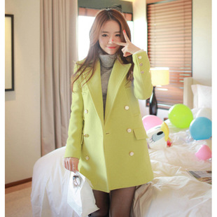 毛呢外套女2014新潮韓范中長款加厚妮子大衣女韓版冬裝外套秋冬潮 /