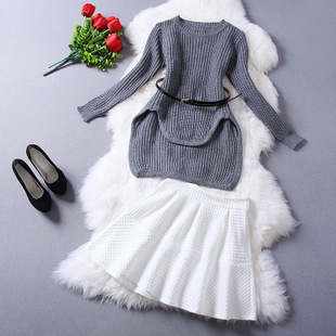 歐洲站秋季新品織針毛衣裙兩件套休閑套裝 女裝代理淘寶分銷代發(fā) /