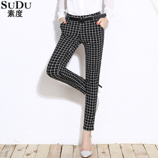 素度秋季新款大牌面料褲格子女褲韓版時(shí)尚休閑九分直筒褲A0080 /