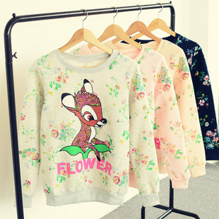 韓國東大門2014秋冬新品女裝印花圓領(lǐng)抓絨衛(wèi)衣422 /