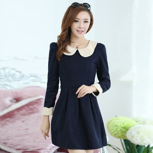 【鎮(zhèn)廠之寶】9806韓版女裝春裝新款毛呢長袖連衣裙修身打底連衣裙 /