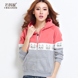 2014韓版冬裝新款連帽 學生抓絨加厚保暖款 大碼開衫衛(wèi)衣女外套 /