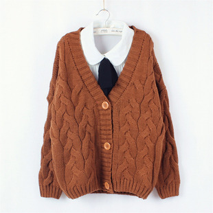 秋冬新款毛衣 復(fù)古大麻花針織開衫 蝙蝠袖寬松純色毛衣外套 M1058 /