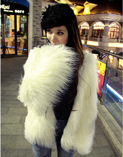 Y955韓國東大門 仿灘羊毛純色長毛仿皮草外套顯瘦毛毛大衣 /