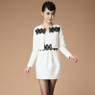 歐美秋冬新款孫儷明星同款兩件套套裝 長(zhǎng)袖外套+緹花背心連衣裙 /