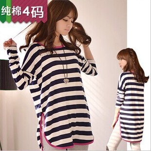 2014韓國秋裝新款女裝 韓版運動休閑薄款條紋長款寬松衛(wèi)衣5229 /