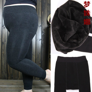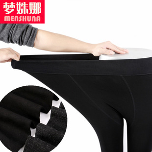夢姝娜 單層無縫一體褲 加絨加厚打底褲 錦綸顯瘦不倒絨保暖褲 /