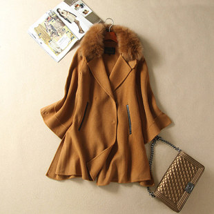 2014秋冬裝女 歐洲站新款高檔貉子毛領(lǐng)雙面羊絨大衣女 呢大衣1502 /