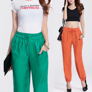 歐洲站100%正品銅氨絲哈倫女褲寬松褲 韓版純色休閑女褲批發(fā)廠家 /