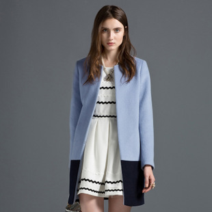 太平鳥女裝2014冬裝新款毛呢外套女秋冬中長款圓領(lǐng)拼色羊毛同款 /