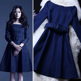 【雙12推薦】2014秋冬新款 歐美大牌全智賢牛仔裙連衣裙女 D1973 /