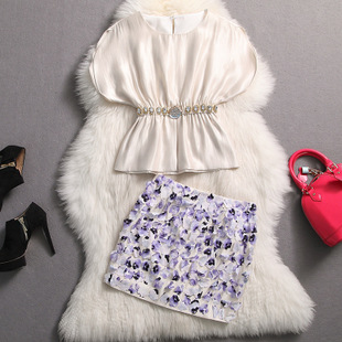 大牌氣質 2014春夏裝新款立體紫色花瓣套裝休閑時尚歐美女裝 /