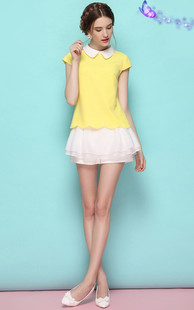 2014歐洲站夏裝新品小翻領(lǐng)短袖上衣荷葉邊i短褲熱褲小香風(fēng)套裝 /