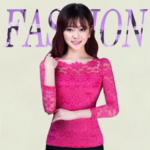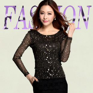 • 2014秋裝新款網(wǎng)紗燙金蕾絲網(wǎng)紗打底衫女大碼女蕾絲打底衫長袖批發(fā) /