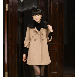 2014新款韓版秋冬新款雙排扣燈籠袖中長(zhǎng)款女士外套 女裝大衣毛呢 /