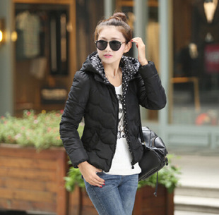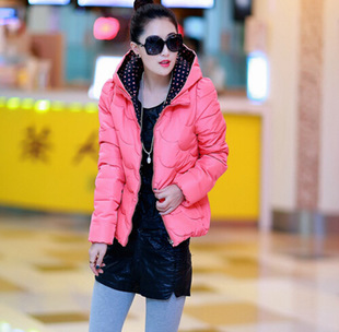 韓版修身女裝新款連帽女士外套 2014時(shí)尚冬季長(zhǎng)袖短款羽絨棉衣 女 /