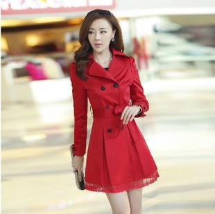 • 韓版修身下擺蕾絲花邊拼接中長(zhǎng)款女式風(fēng)衣OL氣質(zhì)外套大衣 2110890 /