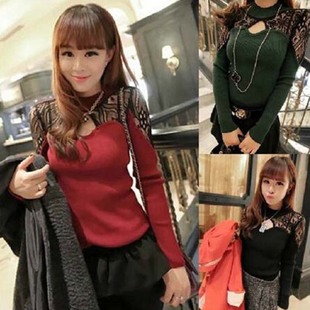 雙11人氣爆款女裝H501-1106 秋性感蕾絲鏤空長袖打底針織衫7-21 /