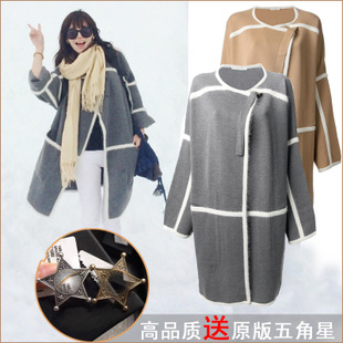 2014明星 7月23秋季小辣椒同款 新款五角星星大衣羊毛兔毛呢外套 /