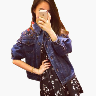 【淘金幣】現(xiàn)貨 高品質小辣椒同款早春新款寶石鑲鉆牛仔 外套 /