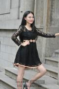 蕾絲優(yōu)雅氣質(zhì)勾花長袖蕾絲修身打底連衣裙 /