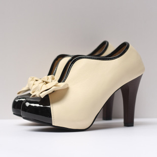 • 長期供貨大碼歐美外貿(mào) 鞋廠可愛蝴蝶結(jié)拼色V口及裸靴高跟鞋單鞋 /