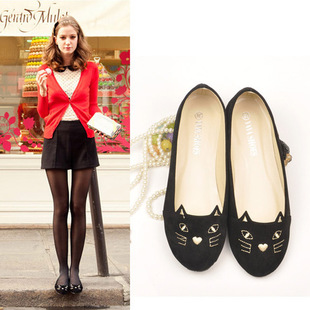 • 2014高檔 歐美明星最愛穿刺繡俏皮可愛貓咪貓頭平底鞋單鞋3189-1 /