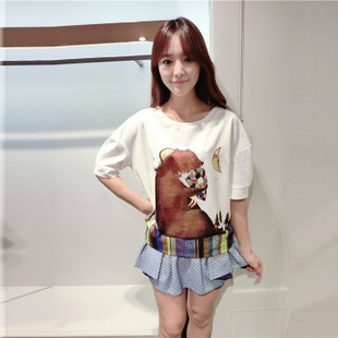 2014韓國 秋季新款 最新女裝新品 印花 韓版寬松圓領(lǐng)中T恤上衣 /