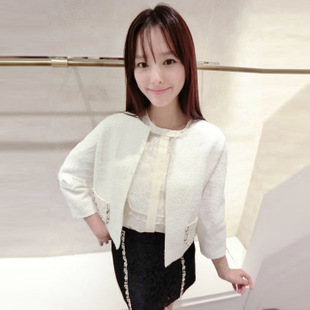 簡介:建議零售價 268.00 產(chǎn)地 大連 主圖來源 實拍有模特 貨源類別 現(xiàn)貨 風(fēng)格 韓版 圖案 純色 面料 毛呢 版型 直筒型 組合形式 單件套 厚薄 普通 衣長 短款(40cm<衣長≤50cm) 袖長 長袖 袖型 常規(guī)袖 領(lǐng)型 圓領(lǐng) 衣門襟 暗扣 流行元素 立體裝飾,鑲鉆,釘珠,亮片 工藝 高溫定型 上市年份/季節(jié) 2014秋季 顏色 白色,黑色 尺碼 S,M