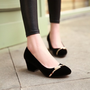 歐洲站2014春季新款單鞋 韓版淺口圓頭中跟金屬裝飾韓流女鞋批發(fā) /