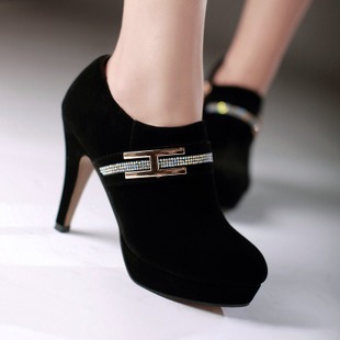 2014春秋季短靴歐美優(yōu)雅磨砂防水臺(tái)水鉆拉鏈款高跟及裸靴女靴批發(fā) /