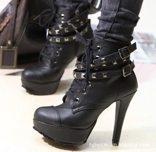 2014秋冬新款韓版搭扣高跟短靴 騎士靴靴子女靴 時(shí)裝靴2453 /