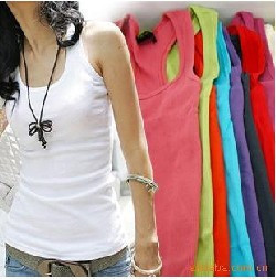 韓版女百搭粗螺紋純棉工字背心加長款打底吊帶批發(fā) /