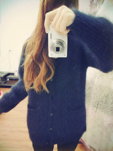 現(xiàn)貨2014MMM*****高圓圓KKKKKKK 深藍(lán)色貂絨羊毛開衫毛衣 /