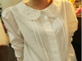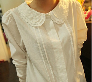 576#現(xiàn)貨5個(gè)碼 娃娃領(lǐng)襯衫女長(zhǎng)袖襯衣小清新森女韓版純棉打底衫 /