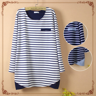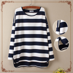 廠家直銷 2014韓版新款秋裝 圓領寬松大碼長袖條紋t恤女裝批發(fā) /