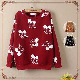 2014冬裝新款韓版寬松顯瘦米奇長袖蝙蝠衫加厚抓絨t恤保暖上衣女 /