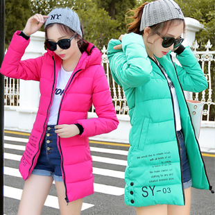 2014羽絨服正品冬季新款韓版修身中長(zhǎng)款印花羽絨服女外套 /