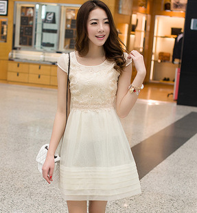 亮靚2014夏季新款時尚女裝蕾絲繡花 甜美修身短袖連衣裙 實拍 /