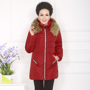 2014新款冬裝女中長款毛領(lǐng)棉衣媽媽裝加厚棉服大碼女裝批發(fā)中年女 /