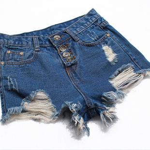 潮款高腰流蘇超短排扣磨破毛邊須破洞牛仔短褲 熱褲 歐美風(fēng)女裝 /