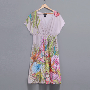 外貿(mào)大碼女裝2014夏裝新款胖mm加大碼女裝短袖v領(lǐng)收腰牡丹連衣裙 /