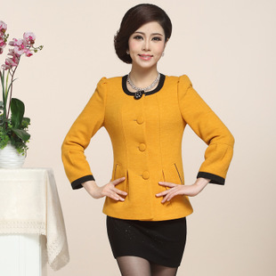 大碼女裝新品 純色時尚超修身顯瘦甜美圓領(lǐng)毛呢外套職業(yè)女裝正裝 /