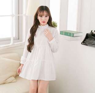 2014秋季新款 韓版立領(lǐng)荷葉邊層層蛋糕裙寬松娃娃連衣裙女棉布 /