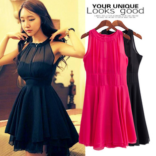 深圳女裝廠家批發(fā)代理代銷 雪紡拼接修身無袖連衣裙 一件代發(fā)貨源 /